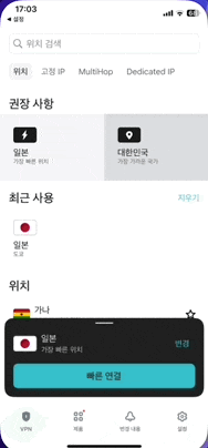 노드VPN과 다르게, 서버 검색창에서 굳이 서버 위치를 영어로 입력하지 않아도 된다는 점 역시 친절하다는 느낌이에요.