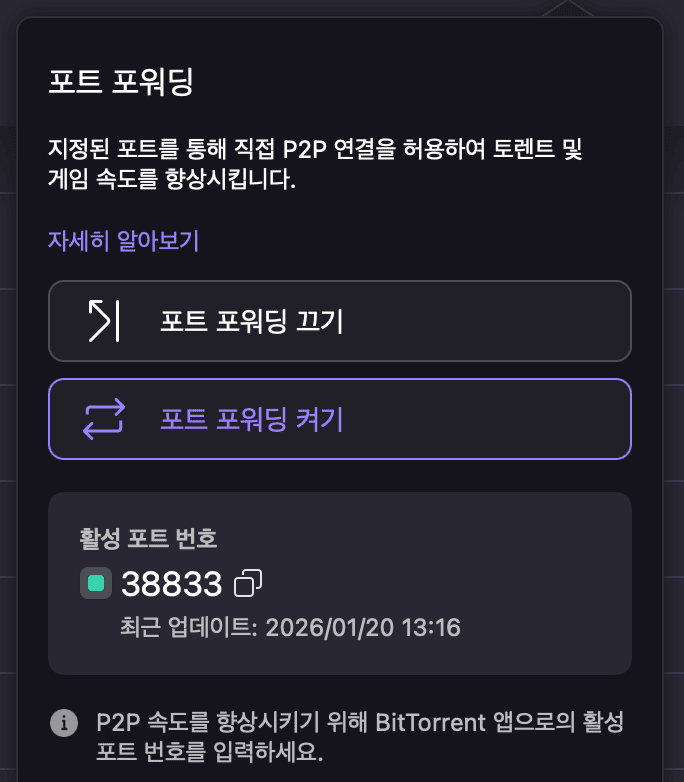 포트포워딩이 있으면, 토렌트를 사용할 때 훨씬 빠른 속도로 파일을 다운로드 받는 것이 가능하기 때문이지요.